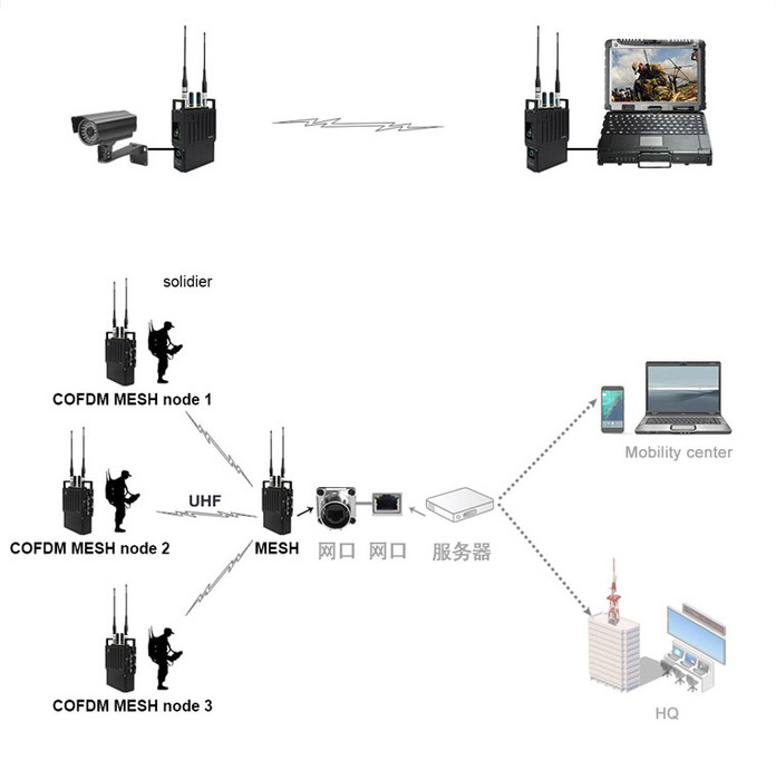 任一節(jié)點(diǎn)電臺(tái)可同時(shí)作為信息采集節(jié)點(diǎn)、中繼節(jié)點(diǎn)或信息輸出節(jié)點(diǎn),開機(jī)即用,實(shí)現(xiàn)高清視頻、語音、圖像等數(shù)據(jù)傳輸,靈活機(jī)動(dòng)、部署簡單。