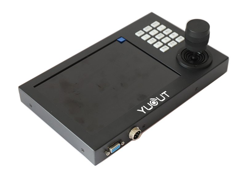 YD-KZ8001-DS?多功能車載鍵盤顯示器是與變速智能云臺(tái)、解碼器、升降桿等終端接收器配套的產(chǎn)品。鍵盤顯示器內(nèi)置8英寸工業(yè)顯示屏,可接入MDVR或者M(jìn)NVR,硬盤錄像機(jī)等,解碼VGA和AV信號(hào),鍵盤顯示器的控制總線與接收器之間采用EIA/RS-485電氣接口。在不加總線驅(qū)動(dòng)的情況下,一臺(tái)鍵盤可控制多路云臺(tái)、升降桿或解碼器,鍵盤顯示器與接收器的最大通信距離達(dá)1Km。同時(shí),利用內(nèi)置的控制鍵盤可方便地對(duì)變速云臺(tái)攝像機(jī)與升降桿進(jìn)行控制,還可直接控制終端解碼器,實(shí)現(xiàn)對(duì)攝像機(jī)、云臺(tái)、鏡頭、燈光、雨刮、升降桿等前端設(shè)備的控制。