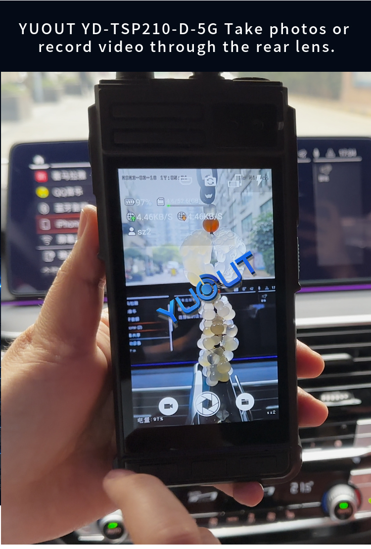 YUOUT YD-TSP210-D-5G is a multi-functional intelligent device with built-in front camera head and rear camera, and supports external HDMI signal source input. This device supports 5G+4G function, and can remotely view the live video of the staff in other regions or cities in the office/command center (for example, I am now in Shenzhen, China, and can view the re-scene video of the staff in Beijing, China), positioning information and call intercom. Install mobile SIM card, can also be used as a mobile phone, can make phone calls. The device is light, easy to carry, and can be hung on the chest and belt. Mainly used in public security patrol, traffic police, drone remote control HDMI output, DV camera and so on.