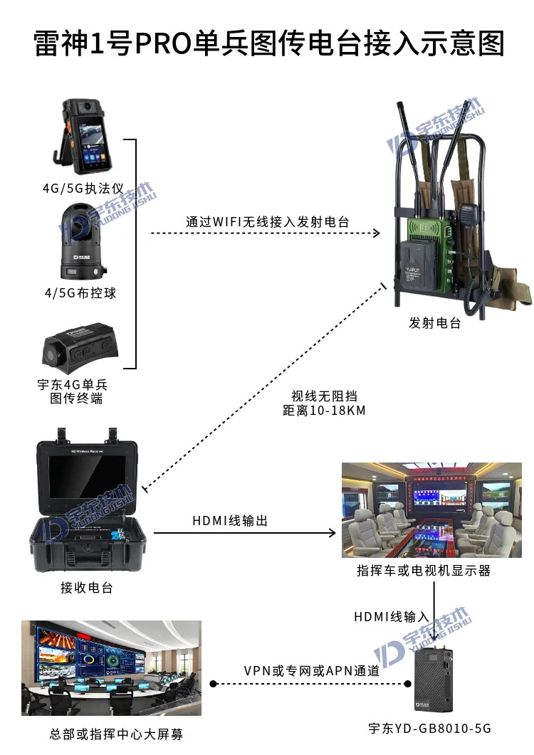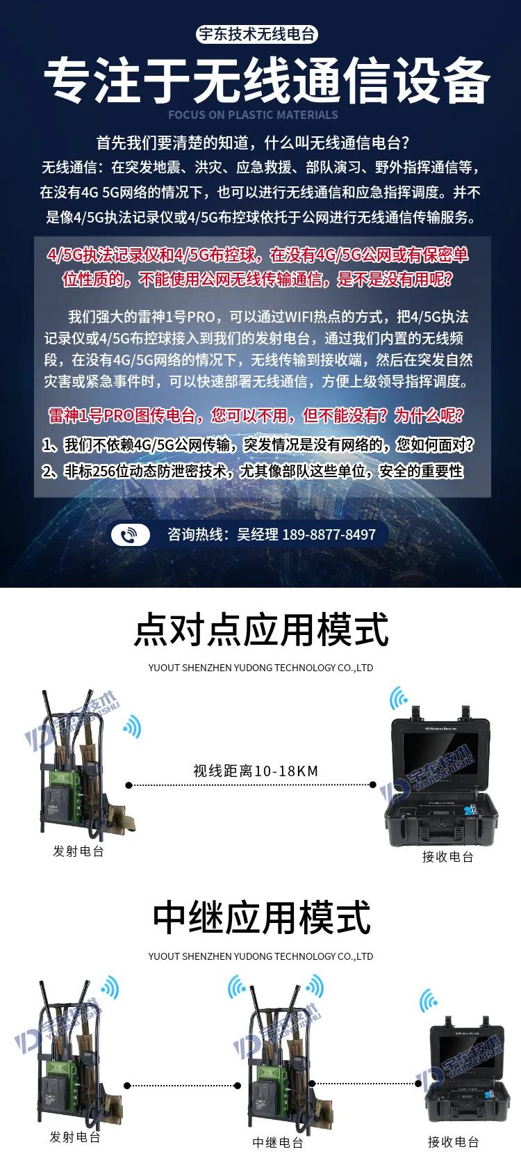 宇東技術(shù)雷神1號PRO背負式高清單兵無線圖傳電臺,是公司針對應(yīng)急救援指揮、部隊拉練演習(xí)、公安、反恐作戰(zhàn)、消防救援、邊防執(zhí)勤、海警海關(guān)巡檢、森林消防等,在突發(fā)重大事件,斷網(wǎng)斷電,通信中斷的情況下,現(xiàn)場工作人員通過宇東雷神1號PRO單兵無線圖傳電臺,可以和指揮部雙向語音通話對講,把現(xiàn)場采集的數(shù)據(jù)實時無線傳輸?shù)街笓]車/臨時指揮部大屏幕,讓指揮部領(lǐng)導(dǎo)對現(xiàn)場情況一目了然,節(jié)省了到達現(xiàn)場的時間,可快速做緊急指揮調(diào)度,最大限度的減少突發(fā)事件帶來的各種損失。
