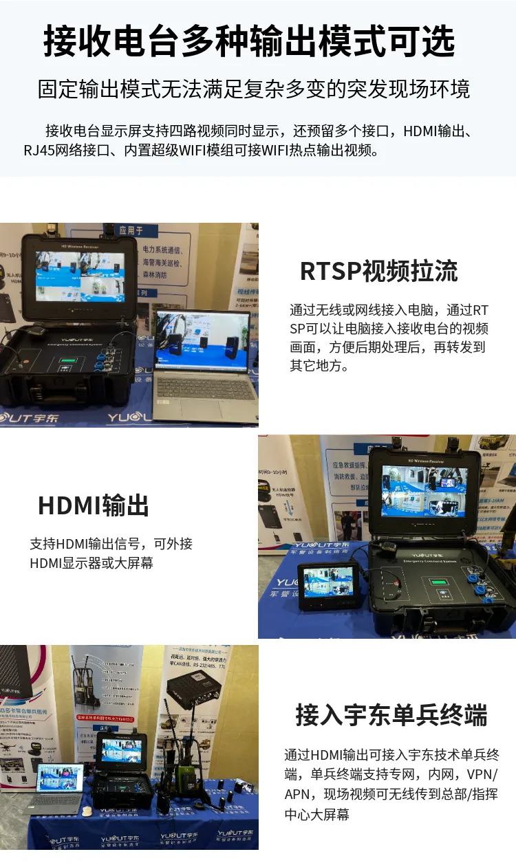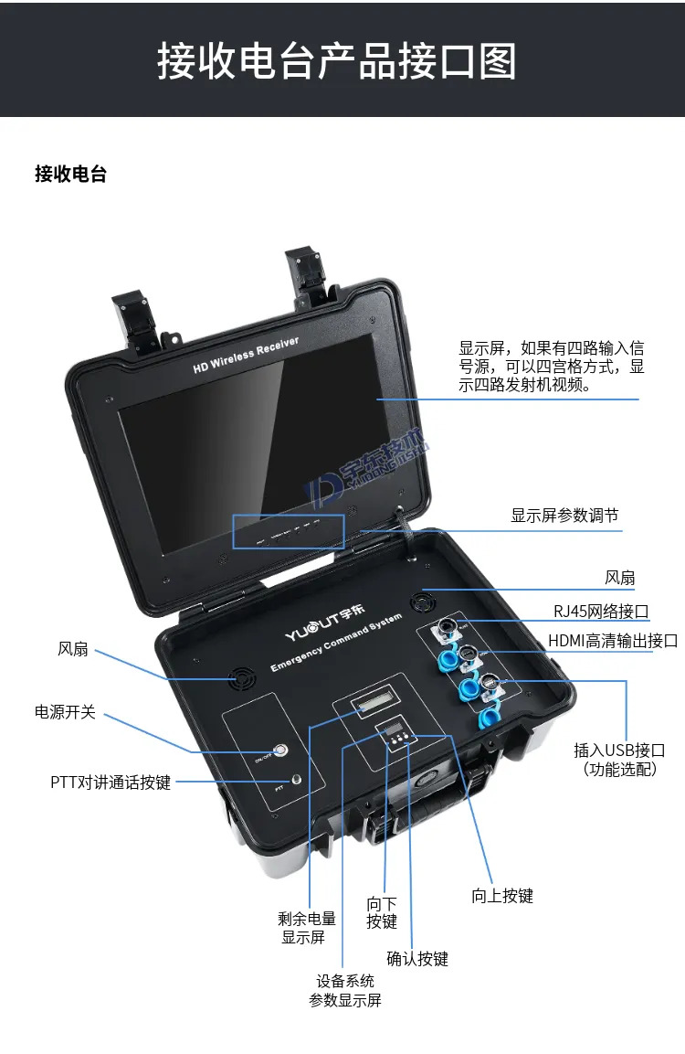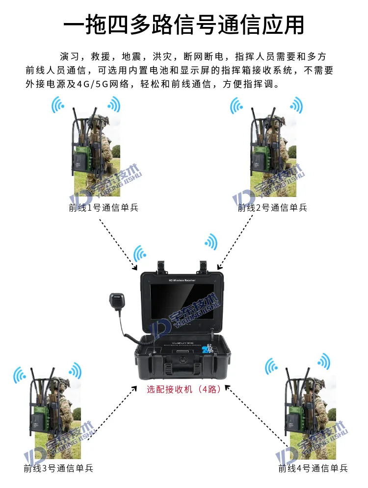 16、接收電臺為指揮箱款,內(nèi)置電池和顯示屏,四宮格顯示視頻畫面