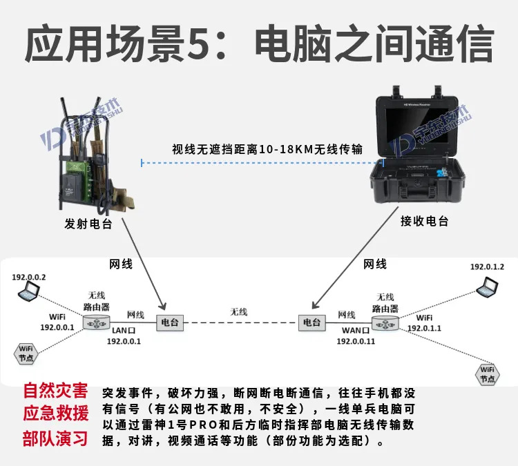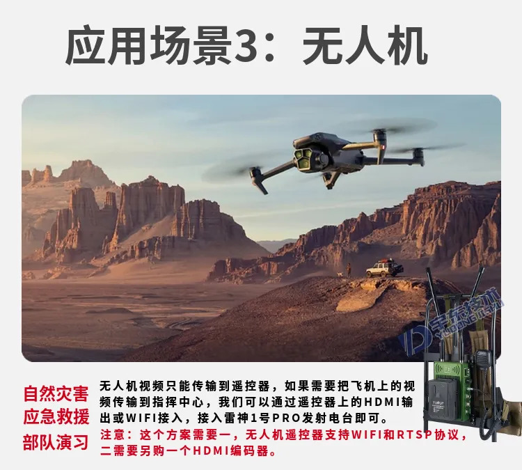 雷神1號PRO背負式高清單兵無線圖傳電臺采用工業(yè)級無線高速率數(shù)據(jù)傳輸技術(shù),集合正交頻分復(fù)用時分多址調(diào)制及 MIMO 多進多出容量技術(shù),完全基于 IP 互聯(lián)網(wǎng)協(xié)議,實現(xiàn)全雙向透明通道寬帶傳輸。非視距:500-1500 米;高對低地面視距或空對地視距:10-18 公里。接收電臺為指揮箱款,內(nèi)置電池和顯示屏,四宮格顯示視頻畫面,并支持HDMI、RJ45網(wǎng)口、內(nèi)置超級WIFI輸出視頻,支持RTSP協(xié)議,可以有線和無線拉流視頻源,創(chuàng)新性液晶一體化、擴展的 WIFI 熱點設(shè)計,便捷了用戶的使用方式,更好的用戶角度體驗。