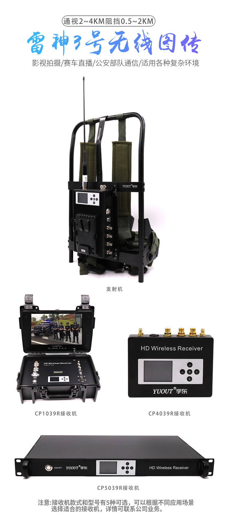 雷神3號無線圖傳采用宇東自主研發的非視距無線技術,300MHz~4400MHz 頻率,可訂制無線頻段,支持3G/HD-SDI最高1080p60穩定傳輸視距1-2KM,最遠可達4000米(需要改裝天線),非視距距離200~2000米(具體視實際應用環境而定)。(環境復雜、可穿墻、人多、車多、樹多及障礙物多的地方),主應用于廣播電視臺、影視拍攝、教育直播、大型演唱會、電影電視制作、體育轉播、社會新聞、空中實況、演播室、海事、 交警、人防應急、城管執法、三防應急等方面。系統為純硬件連接,即插即用。